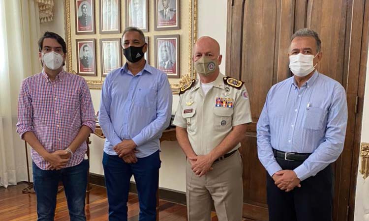 A fim de estreitar os laços entre o município de Ourolândia e o Comando Geral da Polícia Militar e discutir demandas de segurança pública, o deputado estadual Pedro Tavares (DEM), o prefeito da cidade, José Raimundo Araújo, mais conhecido como Zé do Povo, e o ex-prefeito, Antônio Araújo se reuniram nesta sexta-feira (9) com o comandante-geral da PM, coronel Paulo Coutinho, na capital baiana. Depois da audiência com o comandante, o deputado e o prefeito discutiram sobre projetos e ações nas áreas de infraestrutura e assistência social para o município.