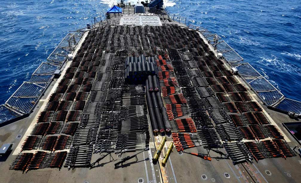 De acordo com a Marinha norte-americana, os armamentos estavam em uma pequena embarcação sem identificação que navegava em águas internacionais. Os tripulantes foram interrogados e depois liberados.