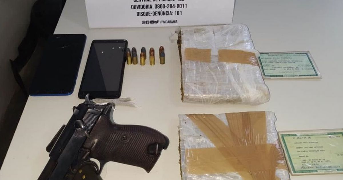 Uma pistola calibre 9mm, dois tabletes de maconha e munições foram encontrados por equipes da 61ª Companhia Independente da Polícia Militar (CIPM/Ubaitaba), com dois homens, após abordagem a um ônibus intermunicipal, na sexta-feira (14).