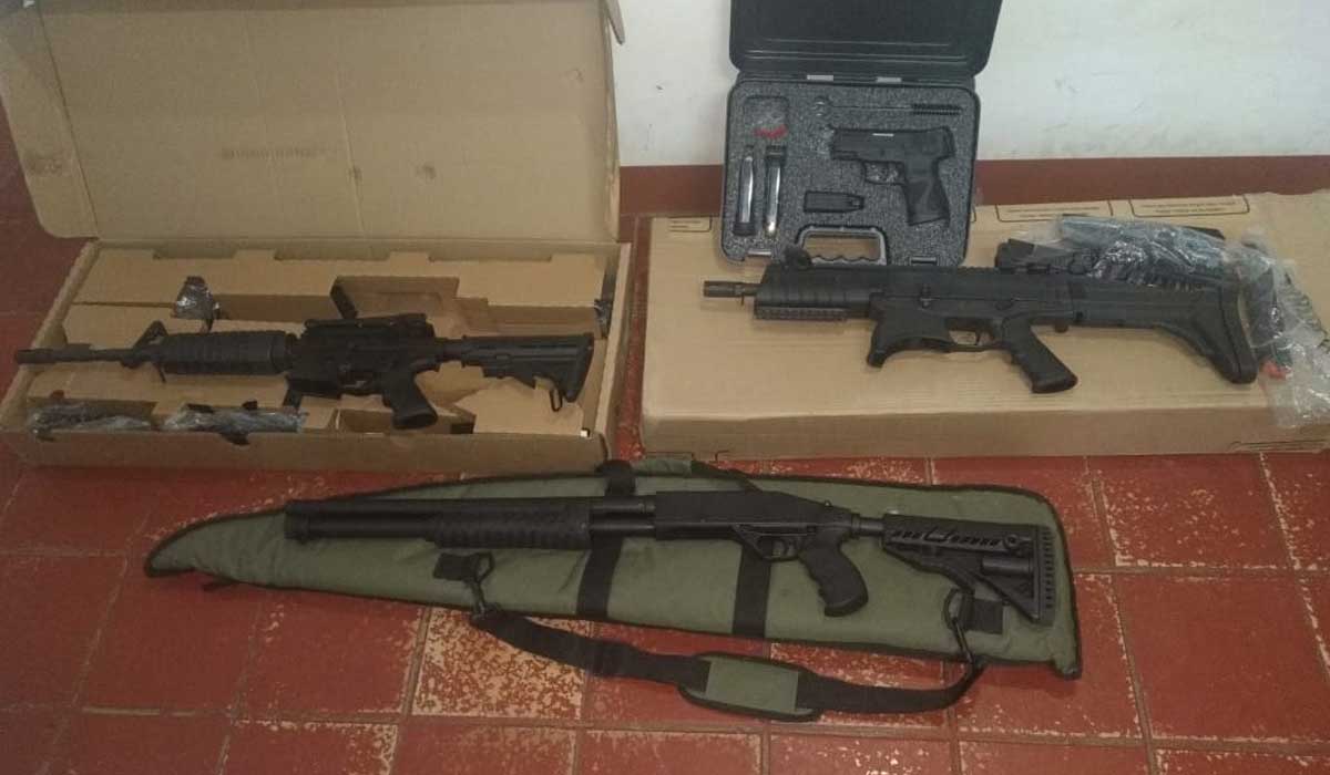 Um arsenal de armas foi apreendido com um homem investigado por violência doméstica em Campo Formoso, município localizado no Norte baiano, na terça-feira (15). Segundo a Secretaria de Segurança Pública da Bahia (SSP-BA), a polícia encontrou na casa do suspeito um fuzil Taurus T4, calibre .556, uma carabina Taurus CTT .40, uma espingarda de repetição CBC calibre 12 e uma pistola Taurus G2C, calibre 9mm.