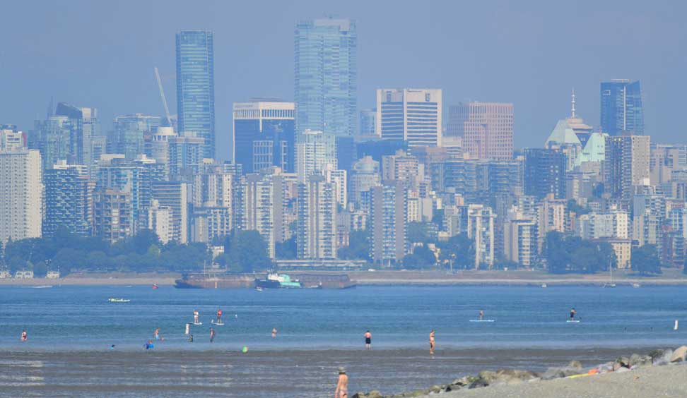 Vancouver, localizada na costa do Pacífico, há vários dias registra temperaturas acima de 30 graus Celsius, bem acima dos 21 graus que temos em média nesta época.
