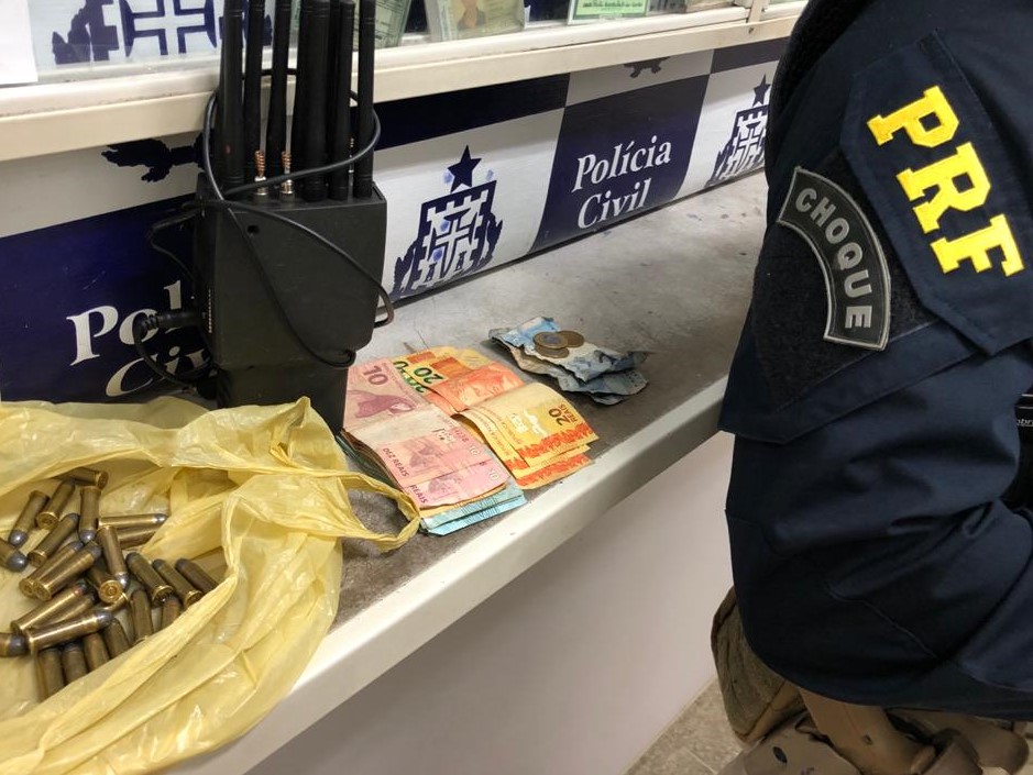 Dentro do caminhão foram apreendidos 27 (vinte e sete) munições calibre .38 e mais um bloqueador de sinal de GPS e celular. Conhecidos por Jammers, eles são utilizados para bloquear o rastreamento de cargas e veículos.