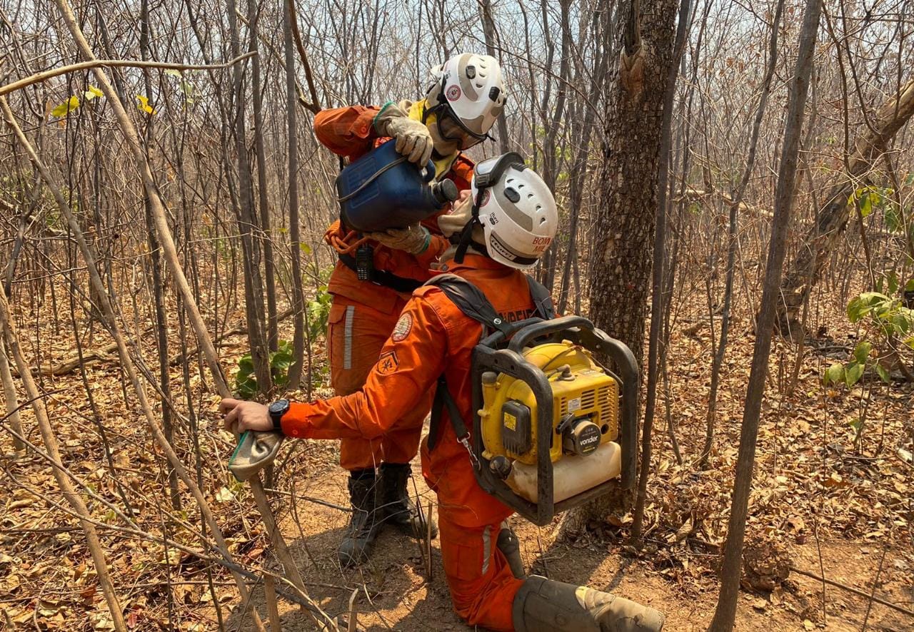 Buritirama - No povoado de Clemente de Baixo o combate continua com o trabalho no perímetro do foco da localidade de tanque novo, com a realização de aceiros e o resfriamento de pontos quentes, bem como com o corte de galhos em brasa.
