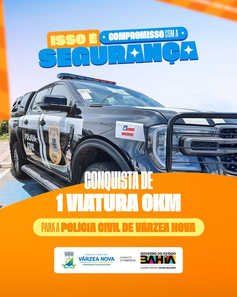 A Prefeitura de Várzea Nova conquistou um marco histórico para a segurança pública do município. Pela primeira vez desde a sua emancipação, a cidade passou a contar com uma viatura exclusiva para a Delegacia Territorial da Polícia Civil.