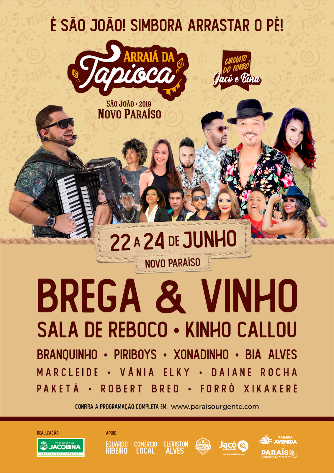 Apoio Eduardo Ribeiro, Comércio Local, Cleriston Alves, Maraca Produções, Padaria Avenida e sites Paraíso Urgente e Jacó Sabe Tudo!