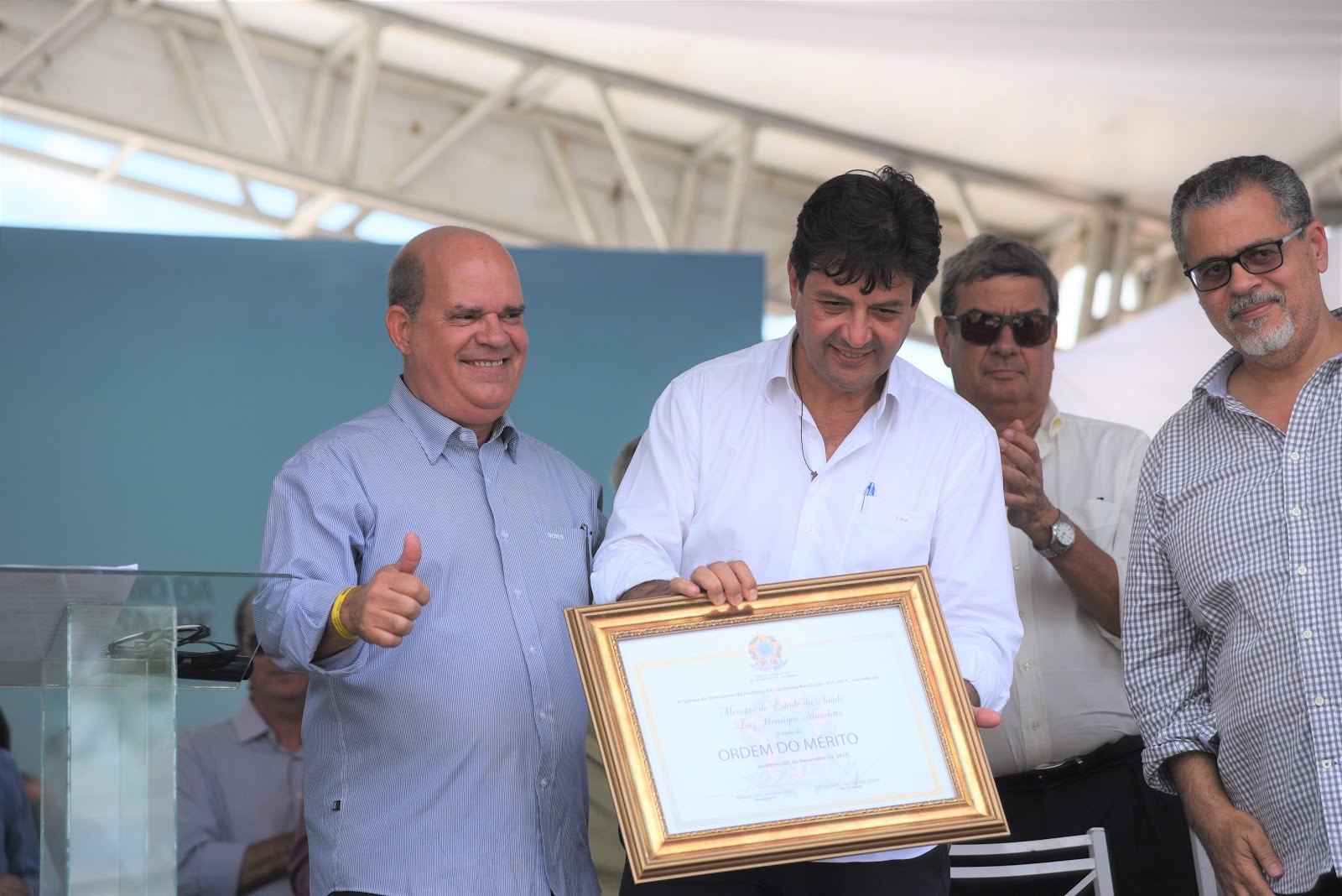 Durante a cerimônia, o ministro recebeu o título de honra ao mérito no exercício de suas funções como ministro da Saúde. Atendendo a um pedido do município, o ministro se comprometeu a comprar equipamentos necessários para o funcionamento do hospital. “Eu garanto os recursos do Ministério da Saúde para compra desses equipamentos e com o recurso local, vocês investem em outras áreas do hospital. A partir de agora a luta é nossa e juntos vamos beneficiar a saúde de milhares de pessoas do interior da Bahia. Em um ano esse país está andando para frente. O Brasil volta a ter respeito e a tendência é mais investimento no país”, concluiu o ministro da Saúde, Luiz Henrique Mandetta.