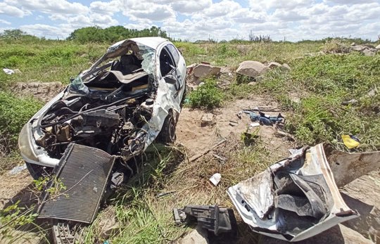 O idoso Nélio Soares Vieira, de 61 anos, perdeu o controle da direção e capotou o carro que dirigia no trecho da rodovia BA-120 que liga os municípios de Santaluz e Queimadas, região sisaleira da Bahia, por volta do meio-dia desta última segunda-feira (20). O acidente aconteceu próximo ao Haras Sena.