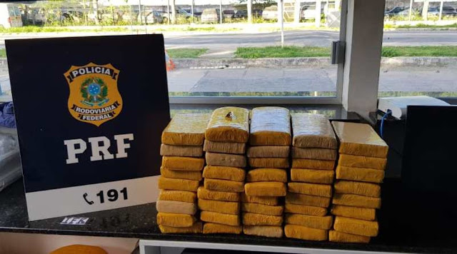 Um homem de 25 anos foi preso na BR-101, altura de Eunápolis, cidade do sul da Bahia, após ser flagrado transportando quase 50 Kg de maconha em uma mala que estava dentro de um ônibus interestadual, na quarta-feira (29). A prisão e apreensão da droga foram realizadas pela Polícia Rodoviária Federal (PRF).