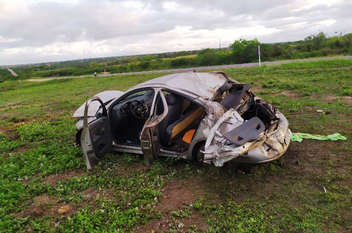 Um individuo não identificado capotou o carro que dirigia na madrugada desta quinta-feira, 06, na BR 116 no limite dos municípios de Teofilândia e Araci no território do sisal.