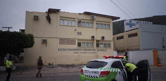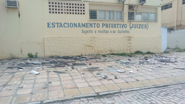 Pedaços de telhas chegaram a cair na área do estacionamento, mas, felizmente, ninguém foi atingido. O fórum estava fechado no momento do incidente. A Polícia Militar e o SMTT foram acionados e estão no local. Agentes de trânsito isolaram a área e alteraram o tráfego de veículos.