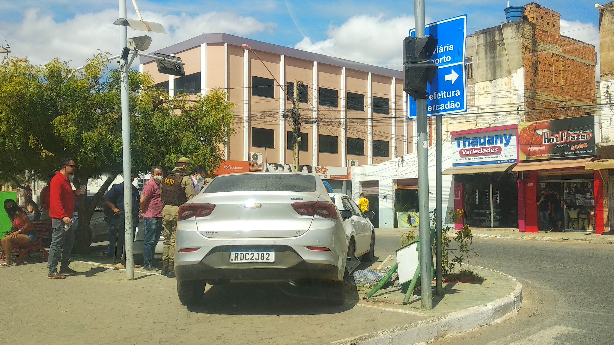 A condutora de um GM Ônix perdeu a direção do veículo no centro de Irecê, invadiu o canteiro da Praça conhecida como Boca D’água, e bateu em um Toyota Corolla que estava estacionado do outro lado do canteiro. Não se sabe o que provocou o acidente, que deixou muitas pessoas assustadas mas felizmente não teve vítimas. Neste momento prepostos da Polícia Militar registram a ocorrência.