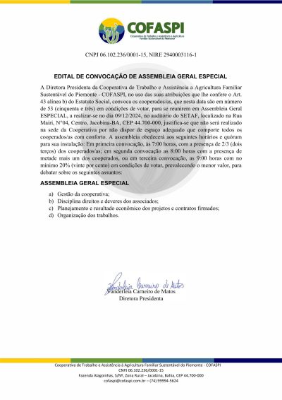 The post COFASPI lança edital de convocação de assembleia geral especial appeared first on Tribuna Regional Agora.